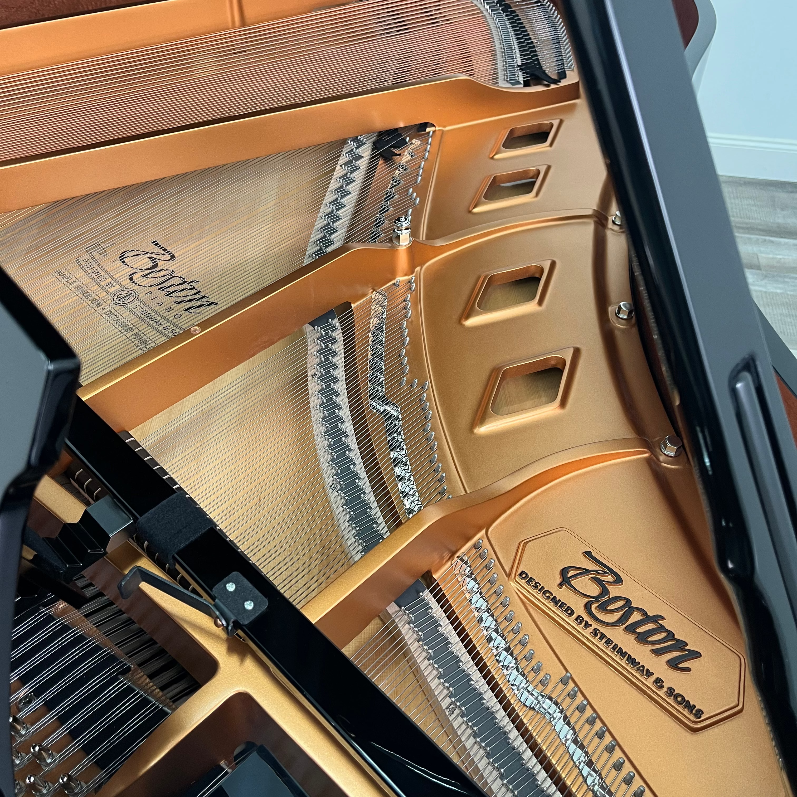 Kept in pristine condition, this like-new piano will excel in design and finesse for your musical tastes. Introducing the Performance Edition II by Boston, featuring a Pomelle Sapele veneer on the inside rim (ebony pianos only), bronze-painted and lacquered plate, black felts, and a rescaled bass and treble strings.