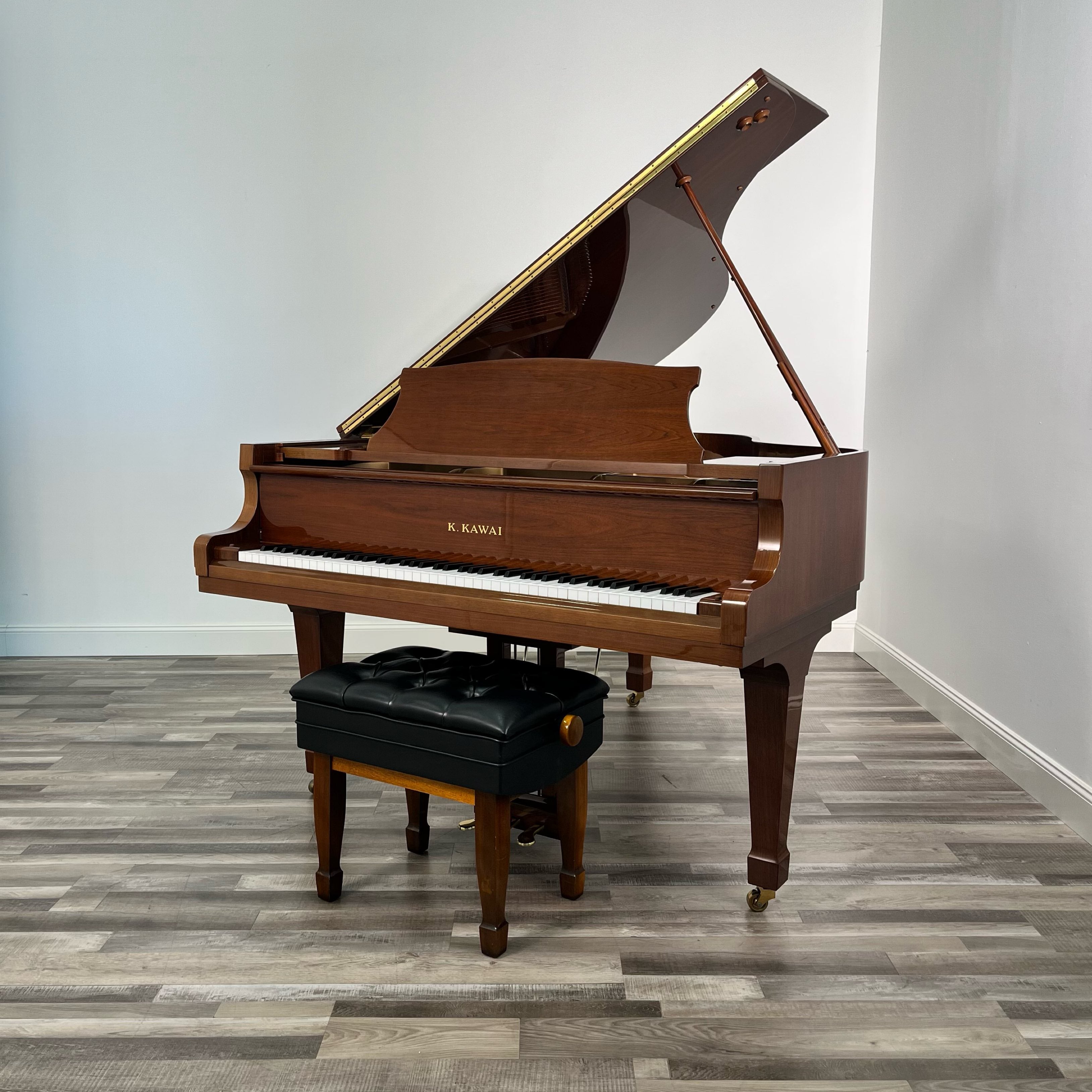 Introducing the Kawai KG-2E, the perfect addition to your living room. With its walnut polish gloss case, leather artist bench, and Japanese craftsmanship, this piano is both aesthetically pleasing and well made. This exquisite piano is in pristine condition and boasts a clear and distinct upper register over a resonant bass foundation. This Kawai will be a remarkable asset to your home and your musical journey.