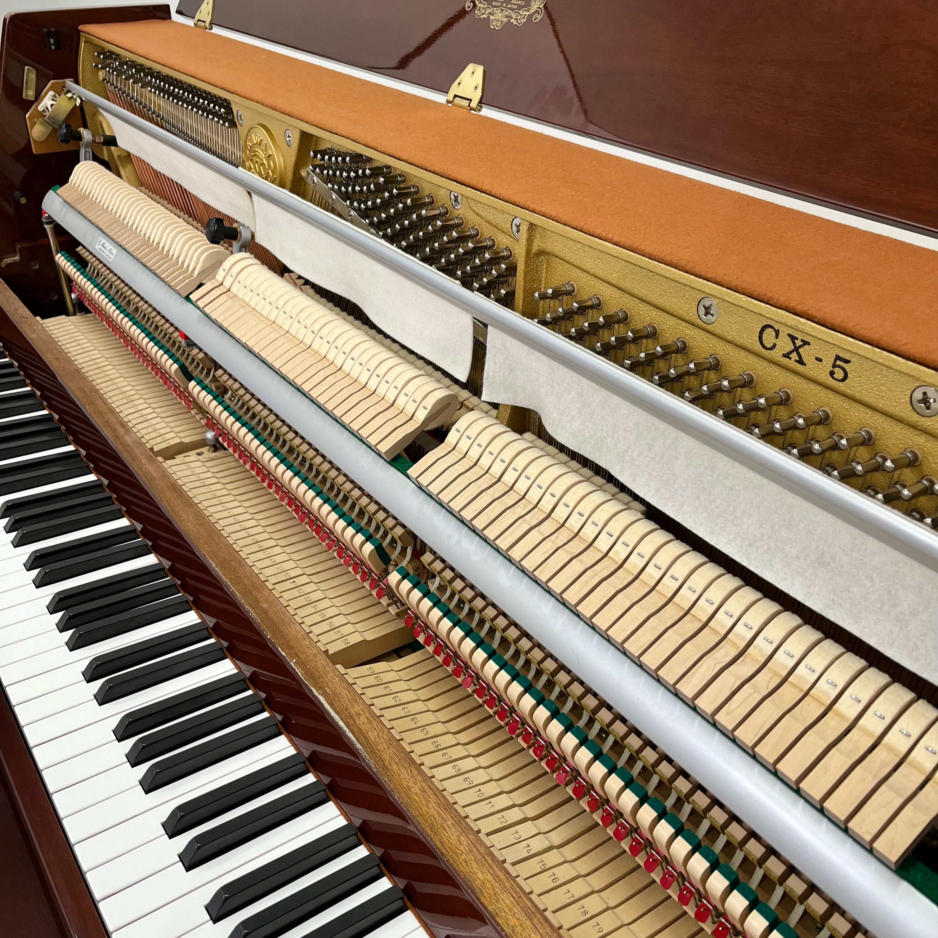 The Kawai CX-5 is a beautifully crafted 44” continental-style upright piano finished in a luxurious polished mahogany. As the direct predecessor to the highly regarded Kawai K-15, the CX-5 carries forward the legacy of Kawai’s commitment to tone, reliability, and playability in a compact and elegant design.